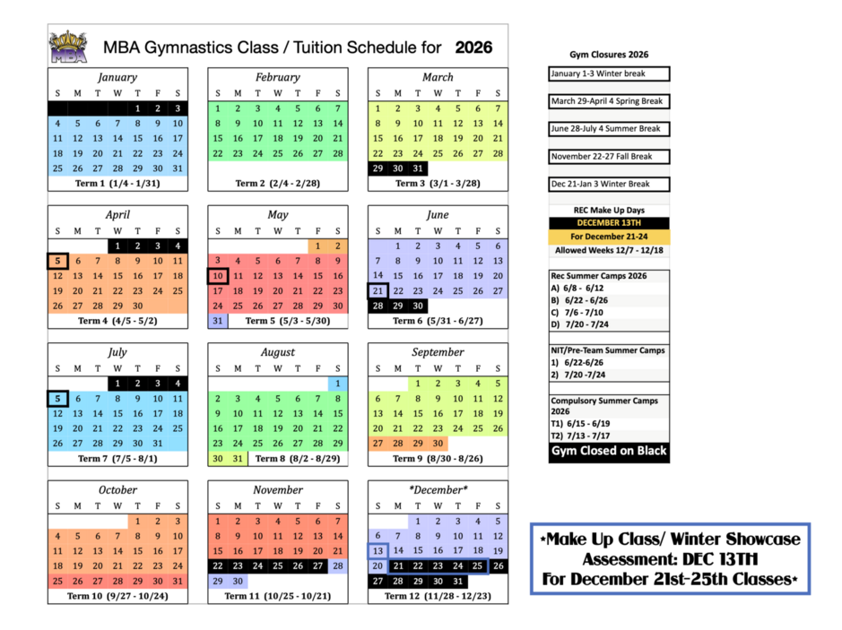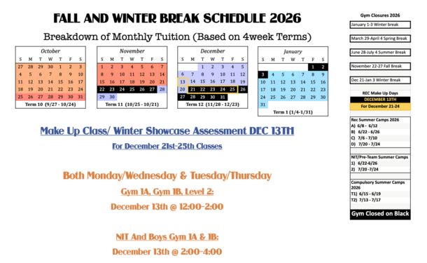 GYM CLOSED Spring Break : March 30 - April 4, 2026